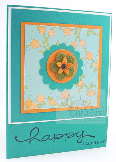 I love layering the Flower Fushion with our other great punch shapes. That is how I created the centerpiece for this card. The Designer Series layer is from Bali Breeze.