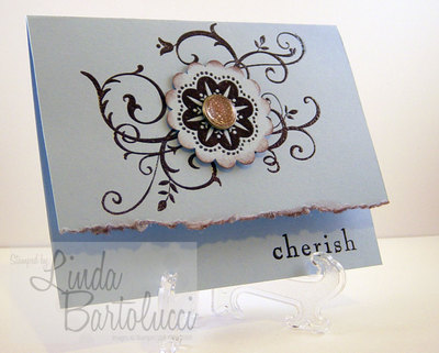 Buildabrad4 This was my favorite card.  It's inspired by a card sample from a Demonstrator friend of my Gabi Kappalanis.  I love the Baroque Motif stamp set – this card is especially cool because it only uses this set!