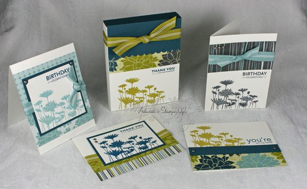 If you’re looking for quick and easy cards to make that’ll “wow” everyone you give them to, then this class is perfect for you! You’ll use the Upsy Daisy stamp set and Urban Garden designer paper to create these four stunning cards and a sleek little box to hold them in.
