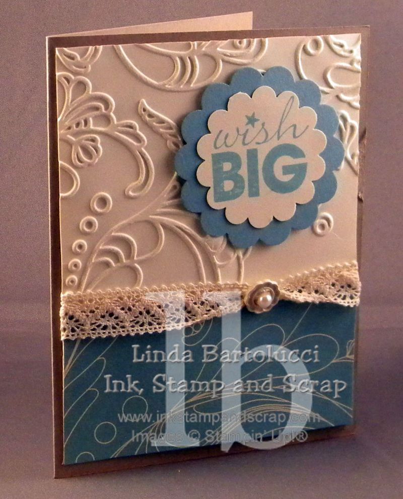 I love the new greeting set Word Play! I used the Wish Big stamp on this elegant card. Next week I will show you how it can be used for a playful, bright card. Don't forget to check back.