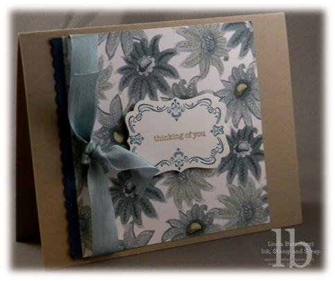 I'm so bummed that I've needed a lot of these lately. I love this phrase "thinking of you", because I can send it to a friend who's down, sick or just lost someone. I think it means so much to receive a card that tells someone that you're thinking about them. I used the Paisley Prints paper, Four Frames stamp set and Teeny Tiny Wishes.