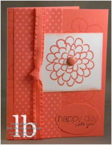 My favorite new color is Calypso Coral. I'm sure it will change with the seasons, but I just love how happy and vibrant it is! Here is a card we made at our Card Class in July. We will be getting together again to stamp on August 18 at 7:30. I hope you can make it! Click HERE to RSVP.