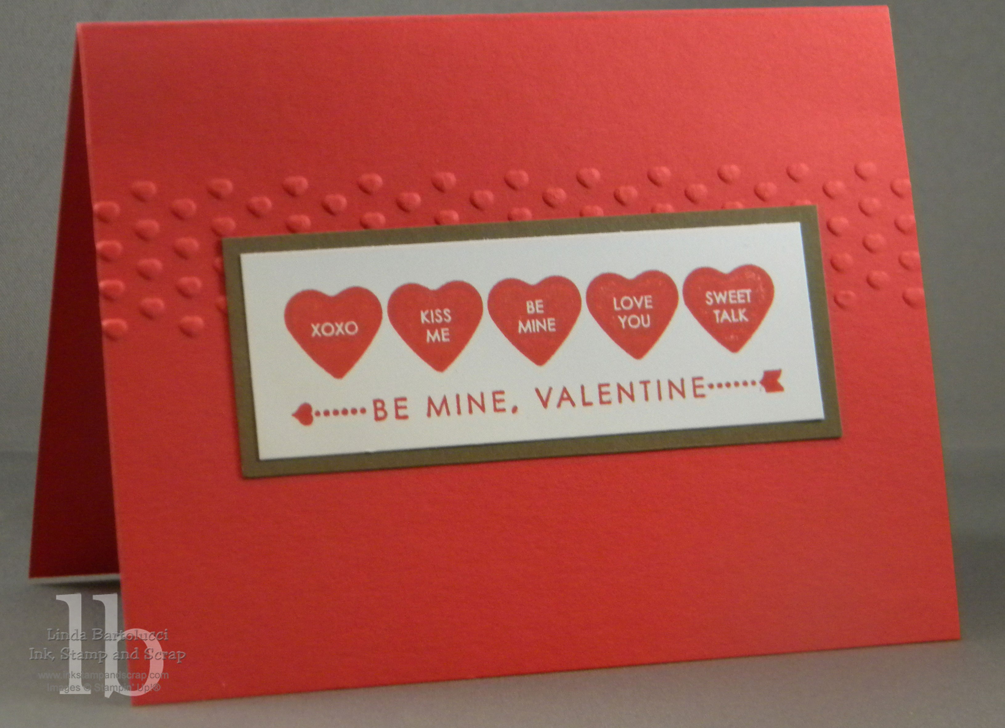 For today's card it's a quick Valentine using some of the new items from the Occasions Mini. When I post tomorrow's card, I promise to include the supplies links. A little busy today getting last minute holiday cards out and gifts to family in Chicago and Dallas.