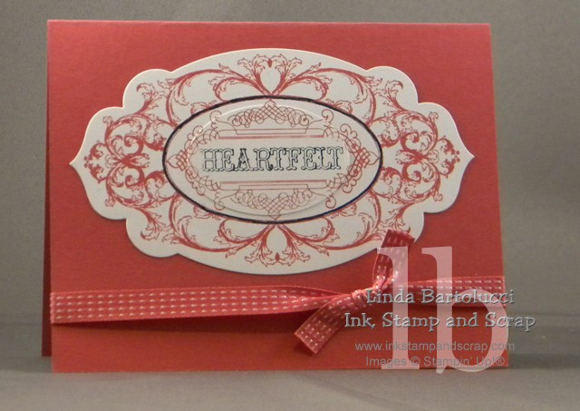 As most of you know, I'm not that great at original designs, but I am a VERY good copier. A demonstrator friend of mine made a similar card and I just loved it! We made this card at card class last month. It uses some great new products and colors. I know you are enjoying the new Annual Catalog! Don't forget you can Order Online 24/7.
